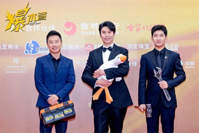 艾伦怀抱一只“大鹅宝宝”,闫佩伦则带着修水管工具,一手锤子一手扳子,画面十分有趣。红毯上,艾伦分享手中的“好大鹅”正是在片中和自己相依为命的爱宠。不仅如此,导演周涤啡的手中还提着一个贴有“DMJZ修水管世家”小广告的工具箱,这波来自“地下土木工程领域专业团队”的小节目不仅为观众们带来了十足欢乐,也让人对《爆水管》的荒诞喜剧故事十分好奇。