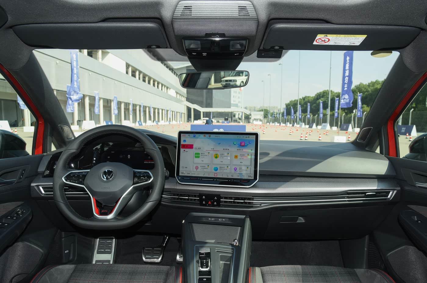 进入车内,数字化座舱与运动氛围的碰撞让人眼前一亮。中控台采用10.25英寸全液晶仪表+12.3英寸中控屏组成双大屏,中控屏向驾驶员倾斜8°,操作更便捷。物理按键进一步减少,空调和音量控制集成于屏幕或方向盘触控面板(带震动反馈),提升了整体的科技感。材质与做工方面,GTI车型采用了“灵魂黑旋风红”双色内饰,红色缝线与菱形格纹点缀的Vienna真皮座椅不仅提供了出色的包裹性和支撑性,更在视觉上点燃了驾驶欲望。后备厢常规容积为 380L,放倒后排座椅后可拓展至 1239L。
