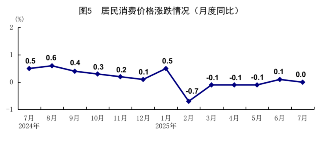 ◆ 7月份,全国居民消费价格(CPI)同比持平,环比上涨0.4%。1-7月份,全国居民消费价格同比下降0.1%