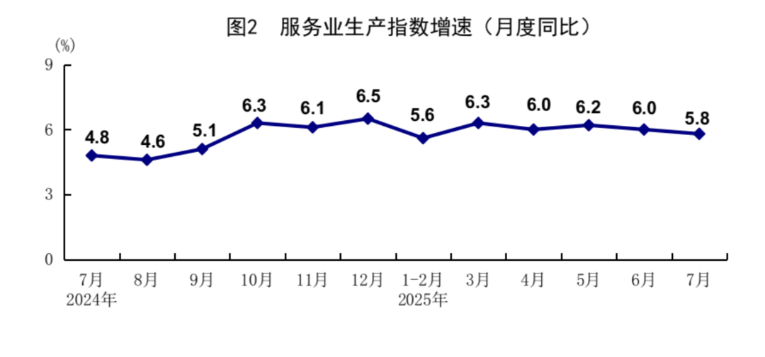 7月份,全国服务业生产指数同比增长5.8%。