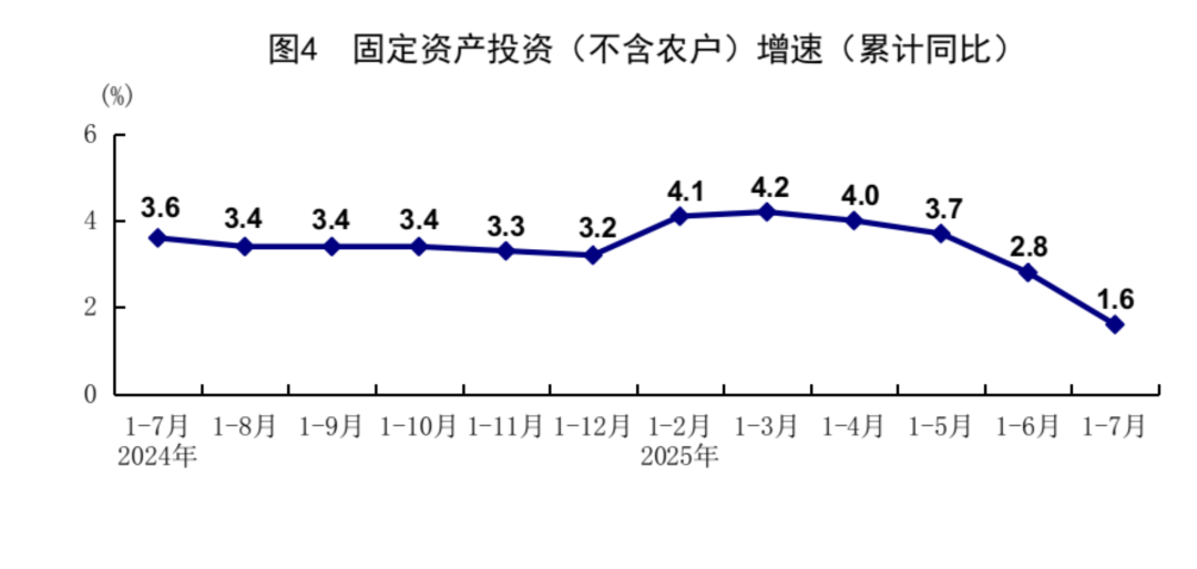 7月份,固定资产投资(不含农户)环比下降0.63%。